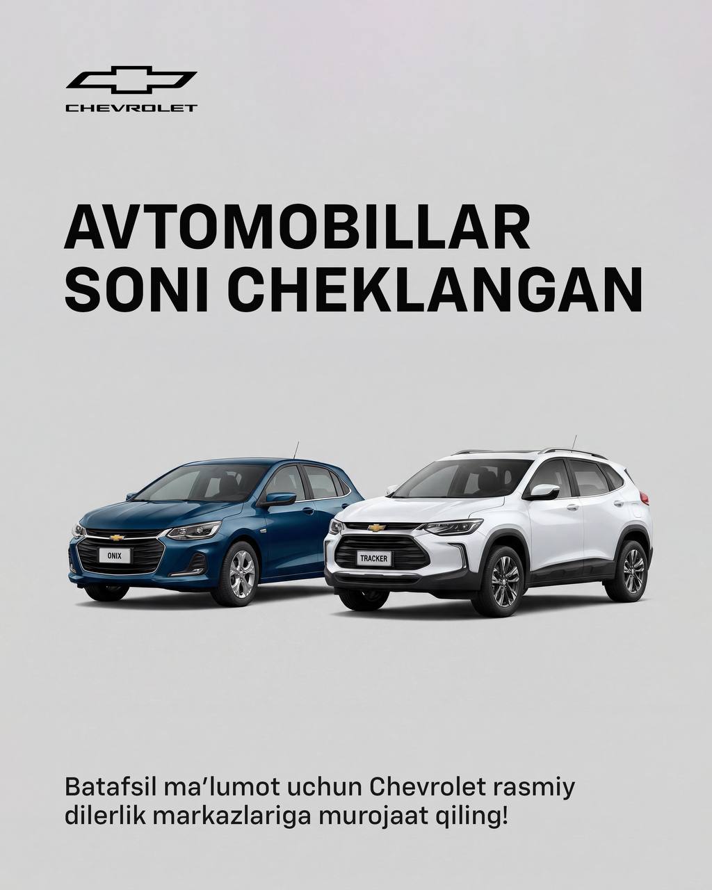 Avtomobillar soni cheklangan, chevrolet.uz sayti orqali ariza qoldirishga shoshiling!